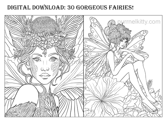 Printable Fantasy Fairy Adult Coloring Book 30 Page Art Bundle